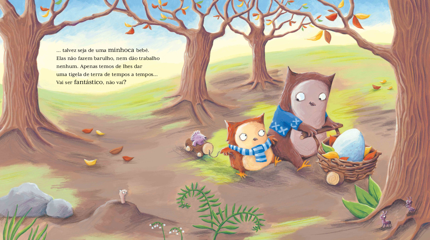 No entanto, depois de imaginar como seria, nenhuma dessas hipóteses lhe agradava realmente. Será que, afinal, ter uma coruja bebé não será bem melhor?